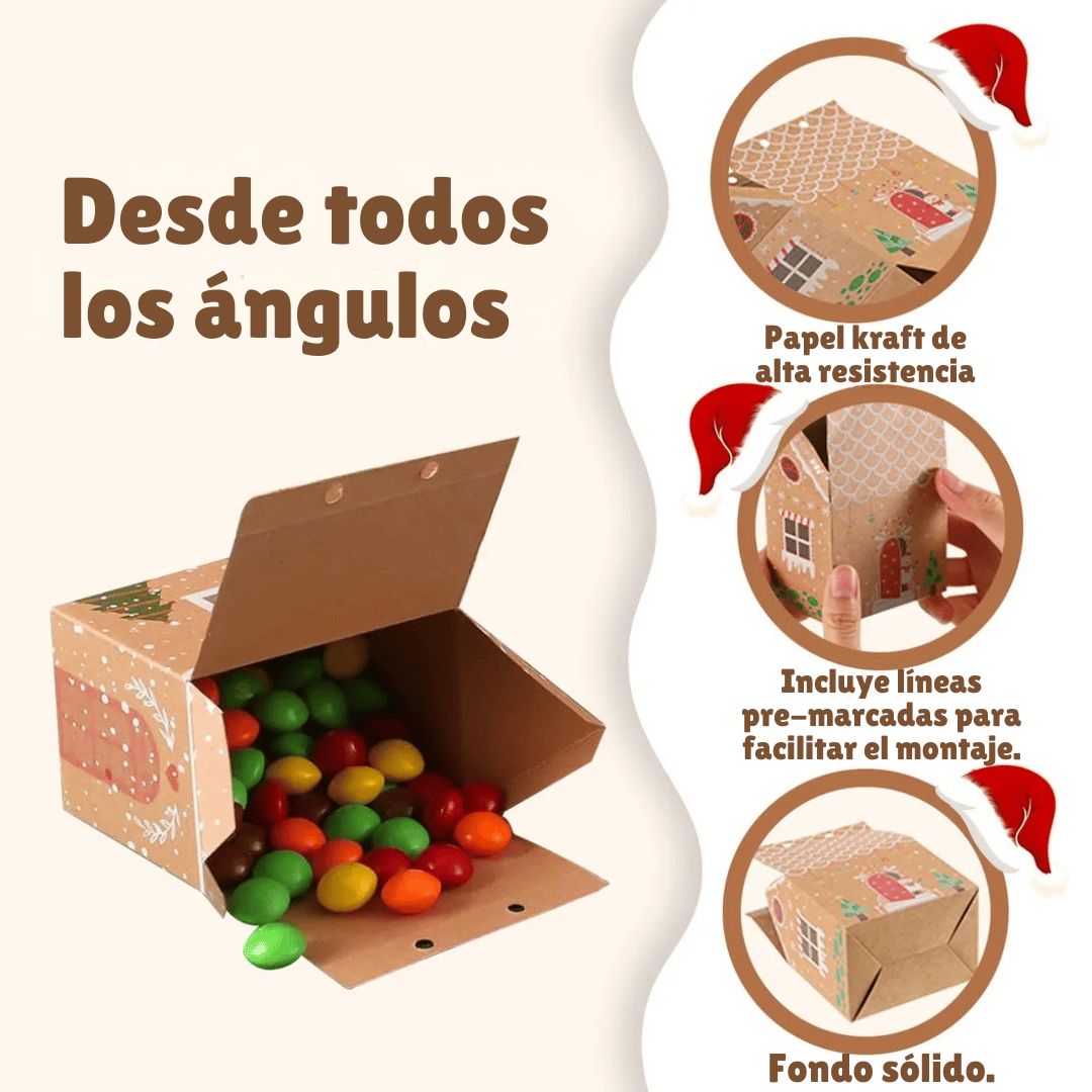 Diseño que enamora: estética de casita navideña con ilustraciones nítidas y colores cálidos. Causa efecto “¡qué tierno!” al primer vistazo y hace que tus regalos luzcan premium sin esfuerzo.